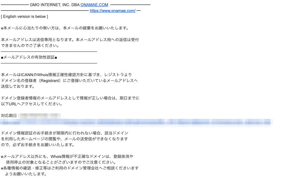 - [お名前.com]Whois情報公開代行 完了通知のメールが来ていることを確認※こちらのメールは個人情報が多く含まれているため非表示完了している事を確認したらWhoisを確認しましょう。