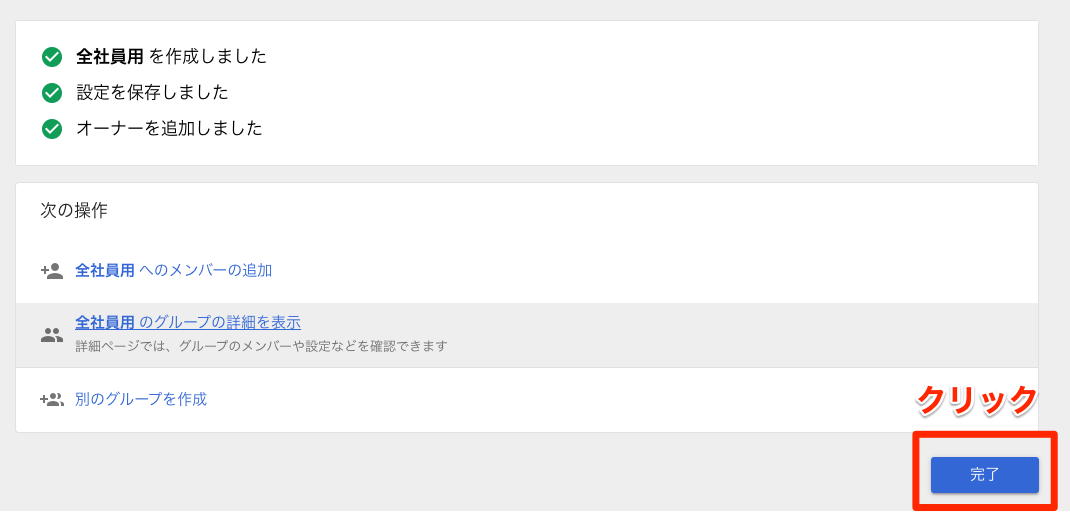 『完了』をクリックするとグループの作成は完了です。
