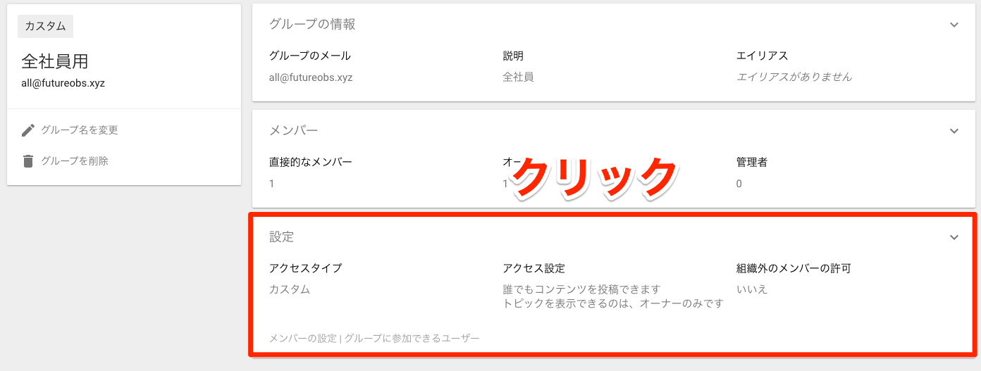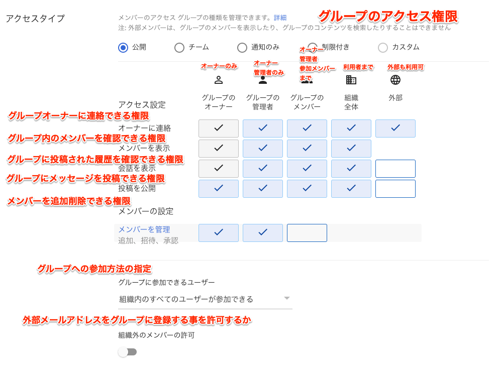 グループを作成した際に設定したアクセスタイプが表示されます。