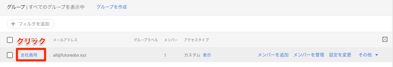 管理画面TOPで再度グループをクリックします。