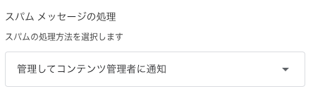 グループ設定の全般の項目をスクロールしていくとスパムメッセージの処理についての項目がありますので