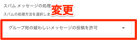 グループ宛の疑わしいメッセージの投稿を許可をプルダウンから選択し
