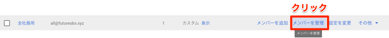次にメンバーを追加したグループのリストで『メンバーを管理』をクリックします。