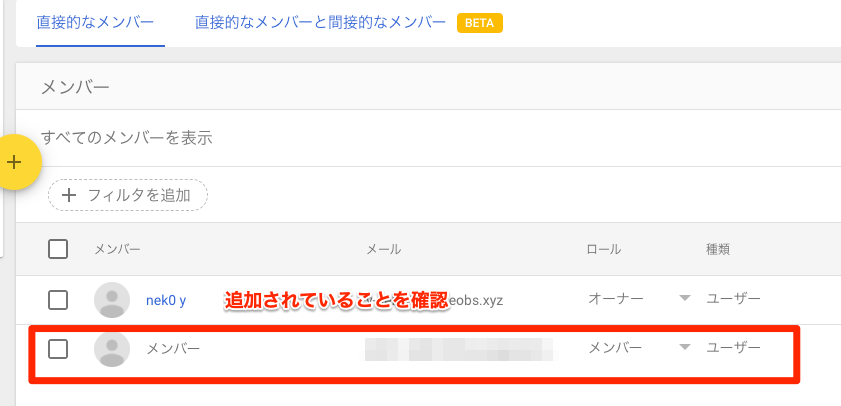 これでメンバー追加が完了となります。