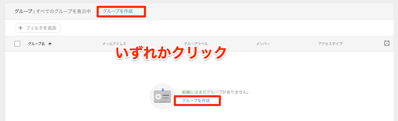 いずれかの『グループを作成』をクリック。