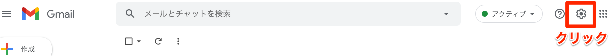 まずGmailの一番上の右に歯車のマークがありますのでそちらをクリック。
