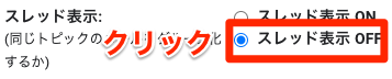 見つけましたら今度はスレッド表示の設定が初期値ではONになっているのでこちらをOFFに切り替えます。