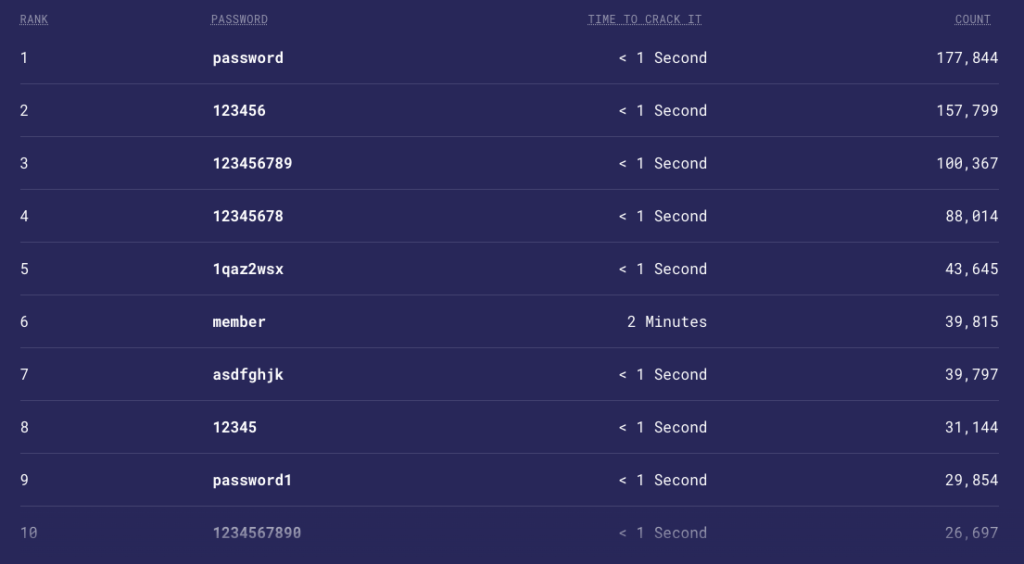 なので皆さんもご紹介する駄目パスワードを真似しないようにして下さいね!