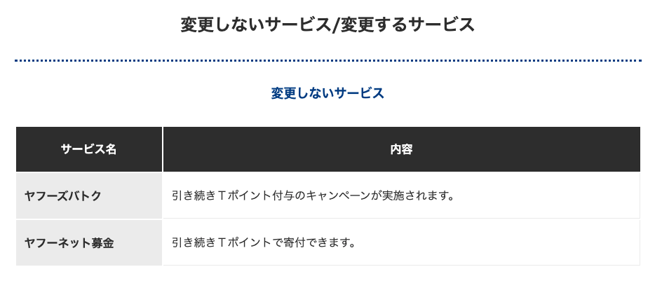 一部を除くYahoo!サービスでの利用と付与については基本は2022年3月31日まで23:59までTポイントを利用・付与になります。