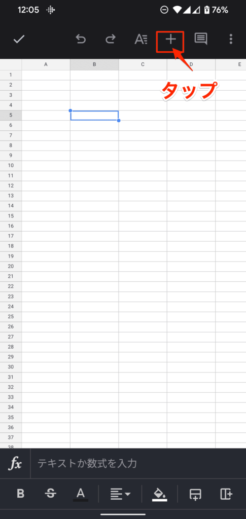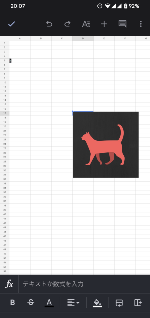 スマホアプリ版スプレッドシートのツールバーで画像を貼り付ける方法
