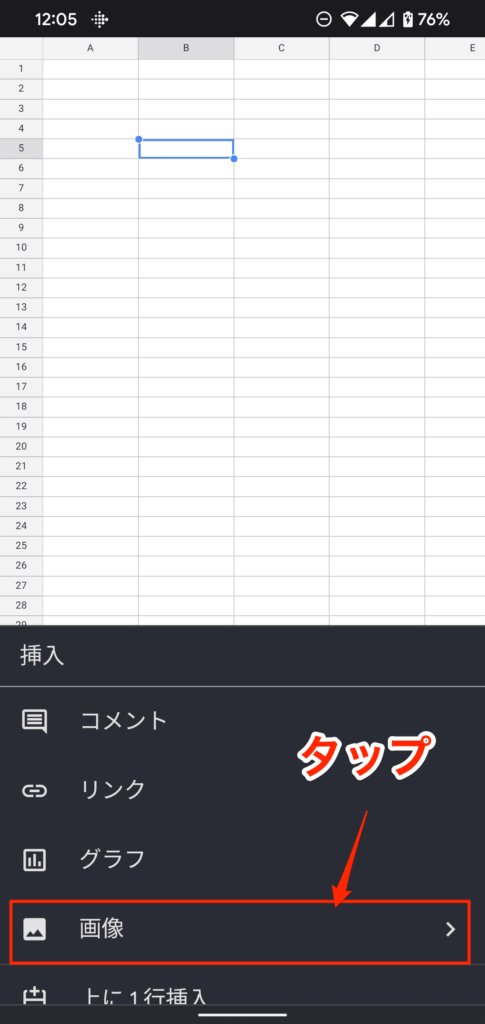 画面下部に挿入のメニューが表示されるので『画像』をタップ