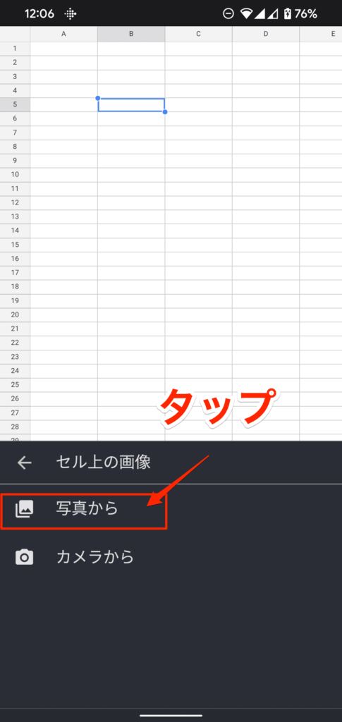 スマホアプリ版スプレッドシートで画像を貼り付ける方法