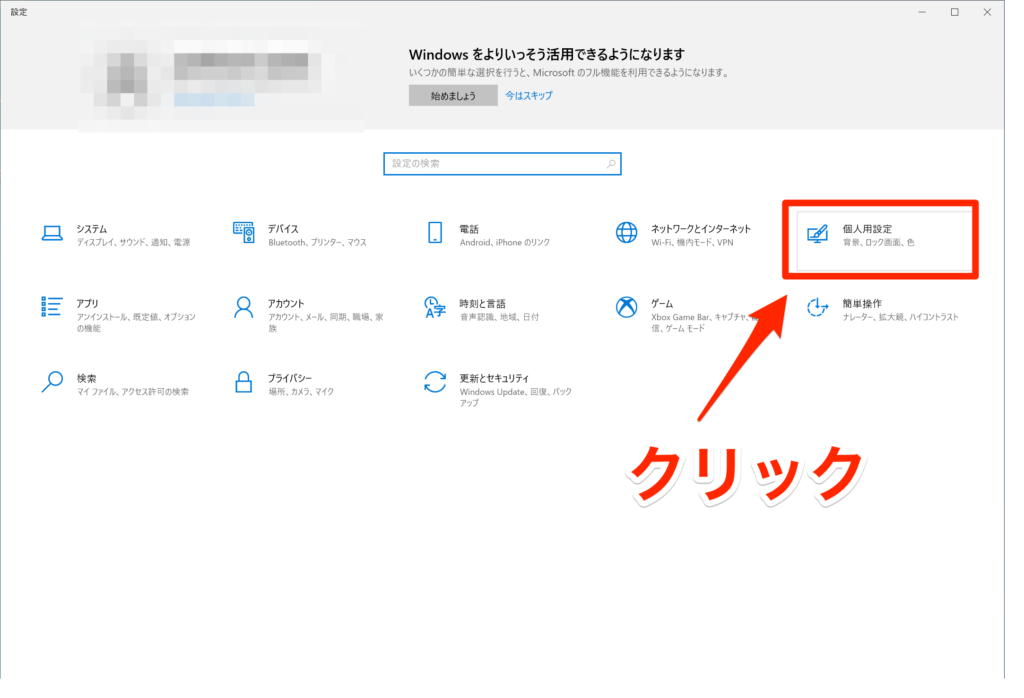 デスクトップ上で右クリックから個人設定をクリックの後、