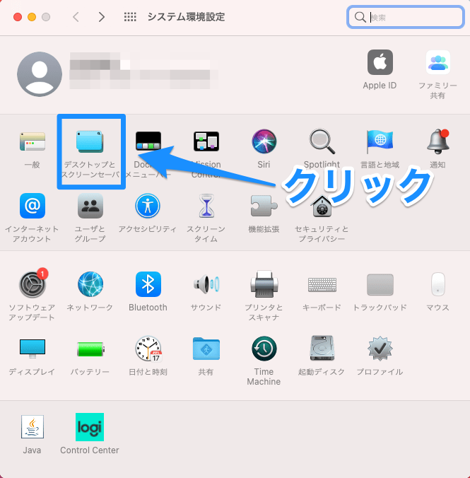 4. そのメニューの中にある『デスクトップとスクリーンセーバー』をクリックします。
