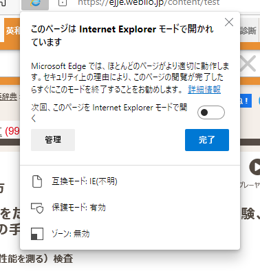 EdgeのIEモードは1度設定すると約30日はIEモードで開く様になりますと記されています。