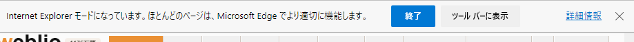 またIEモード中はブラウザ上部に以下のメッセージが表示されます。