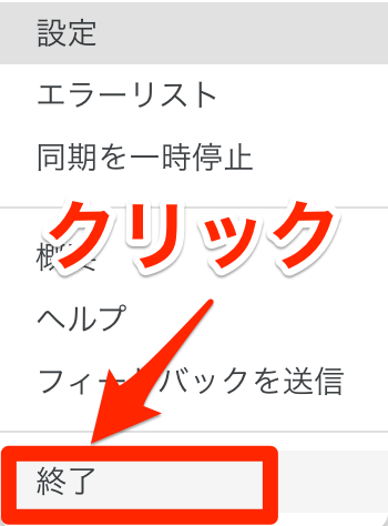 『終了』をクリック。