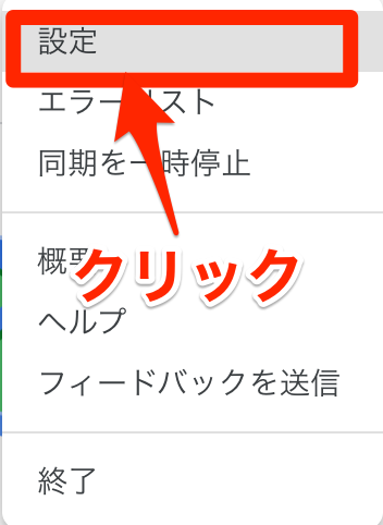 するとリストが出てくるのでそのリストの一番上にある『設定』をクリック