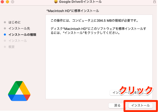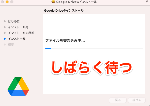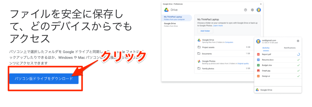 するとパソコン版 Google ドライブのダウンロード画面が表示されるので