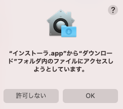 Mac本体のダウンロードフォルダにインストールプログラムがダウンロードされるので