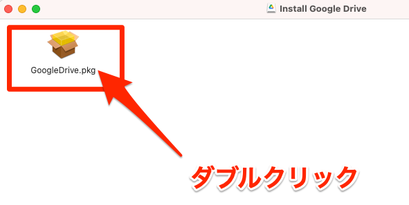 すると、pkgファイルが出てきますのでそれをダブルクリックします。