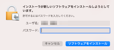 インストール時にアカウントパスワードを求められるので注意してください。